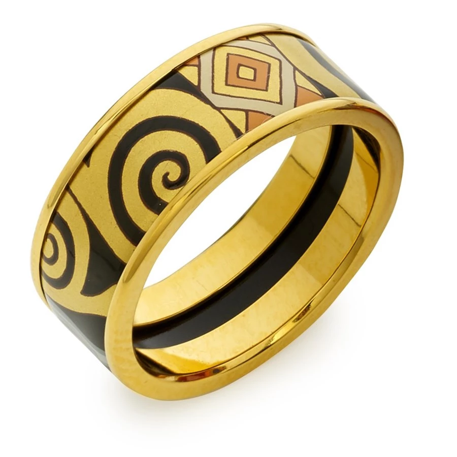 Artistically designed and fire-enameled in Austria by master artisans, this art nouveau hand-decorated ring is inspired by the famous portrait of Adele Bloch-Bauer I by Gustav Klimt. The ring is enhanced with 24k goldplated accents. Handmade in Vienna. Please review the Freywille Ring Guide.