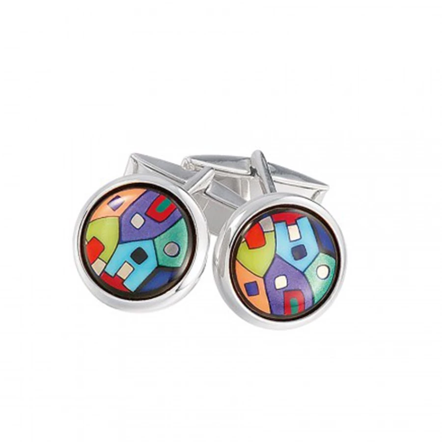 Every piece of Freywille jewelry is a high-quality work of art. These cufflinks are inspired by the Streets Rivers artwork by Austrian artist Hundertwasser. The artistically designed fire enamel elements within Freywille’s Round Cufflinks make for precious fashion accessories that add a special touch to every man’s outfit. Handmade in Vienna.