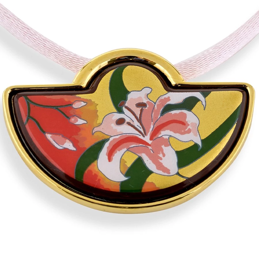 Masterfully crafted in Vienna with fire-enamel and plated with 24k gold accents. Inspired by the Polynesia artworks of Paul Gaugin, the halfmoon pendant requires up to 100 manual steps to produce the stunning fire enamel. The perfected technique and unique colors make the pieces shine with stunning unmistakable brilliance. Our one-of-a-kind Small Half-Moon Pendant showcases unique fire enamel designs in a discreetly elegant setting. Handmade in Vienna.