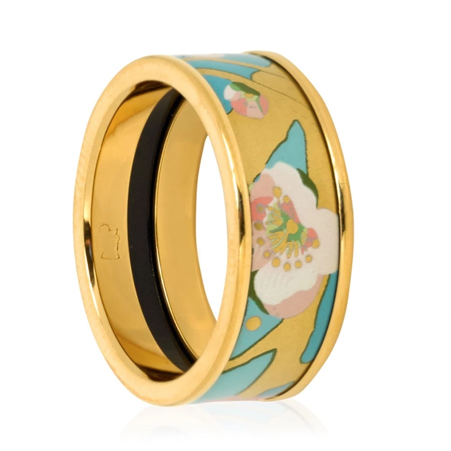 Artistically designed and fire-enameled in Austria by master artisans, these post-impressionism hand decorated rings are inspired by the famous works of Vincent van Gogh, including the Almond Blossom studies. Each ring is enhanced with 24k goldplated accents. Made in Vienna.
