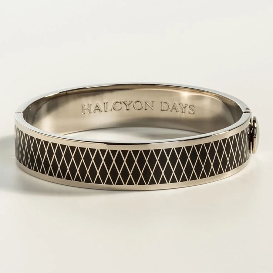The repeating geometric design of the Halcyon Days Parterre Bangle makes it a modern classic. Wear the black and cream stacked for an elegantly understated look, or select a red, orange or turquoise to add a pop or color to your outfit.