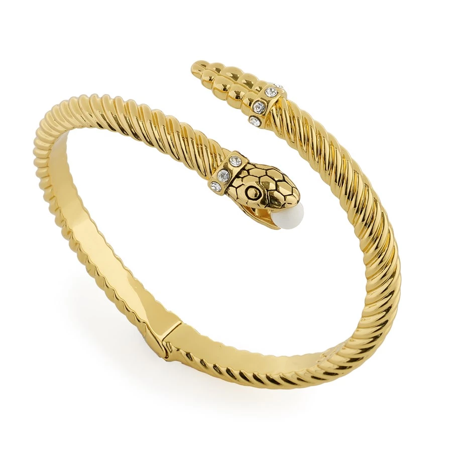 | Style | Halcyon Days Snake Twist Cream & Gold Bangle, Small, Halcyon Days Snake Twist Cream & Gold Bangle, Medium |