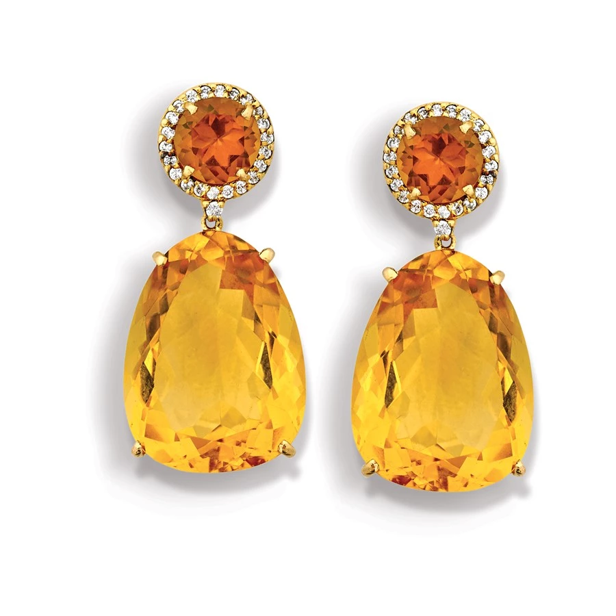 Brazilian citrines over whiskey citrines set into 18k yellow gold with diamonds surrounding each upper stone (.288 tcw). Handmade in Brazil.