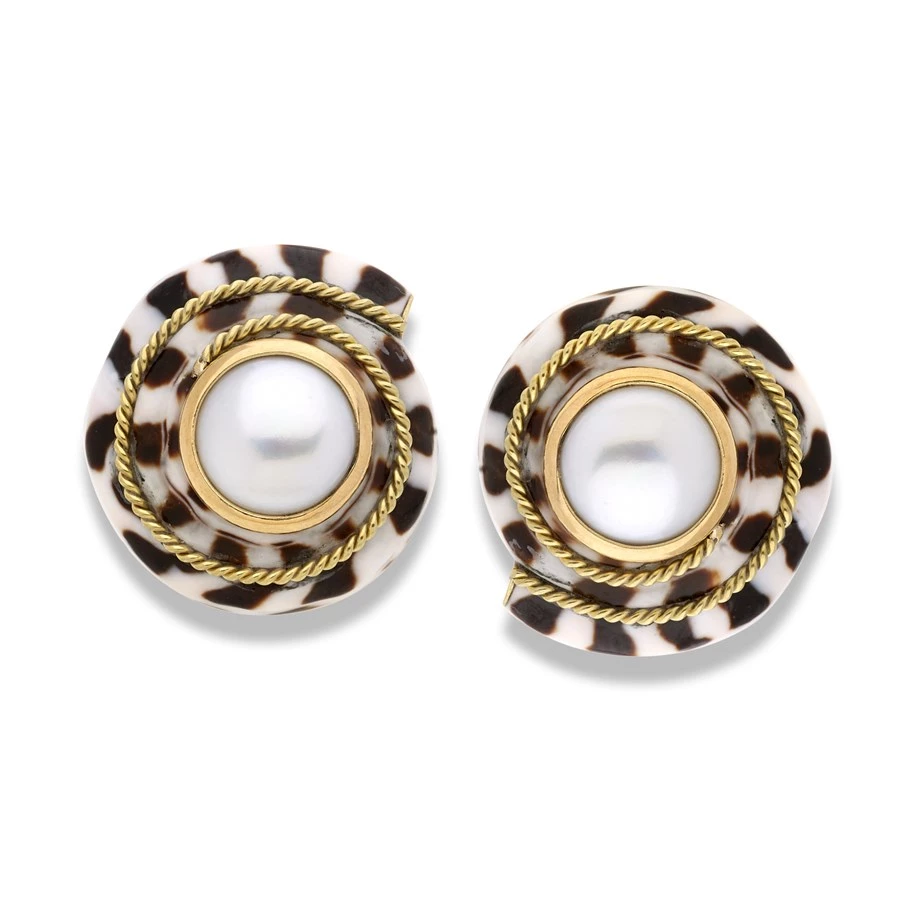 Scully & Scully 18k Cone Shell With Pearl Earrings