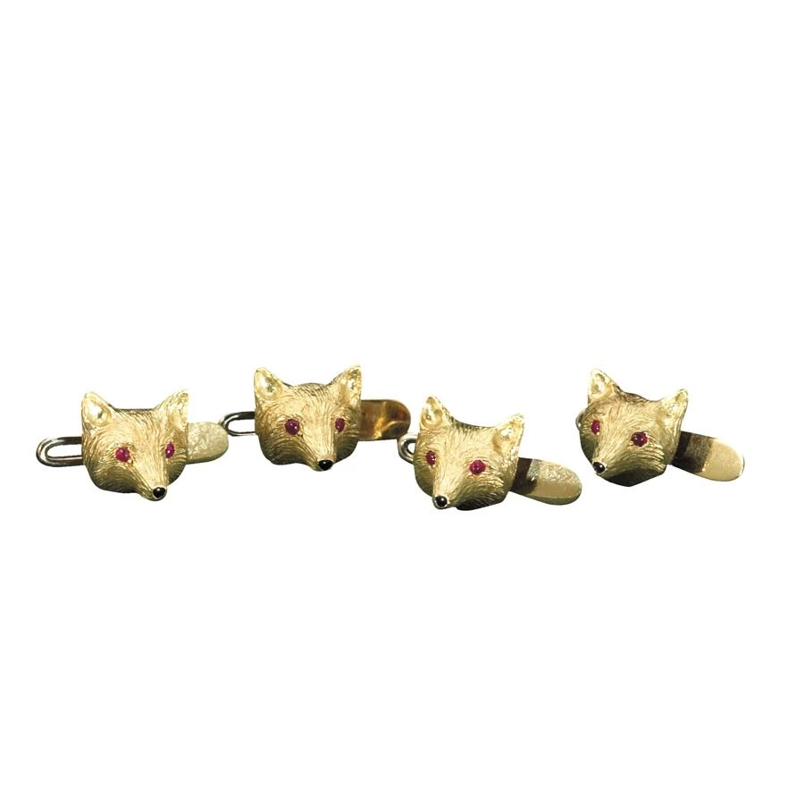 Scully & Scully 18k Fox Studs With Onyx Noses & Ruby Eyes, Set Of 4