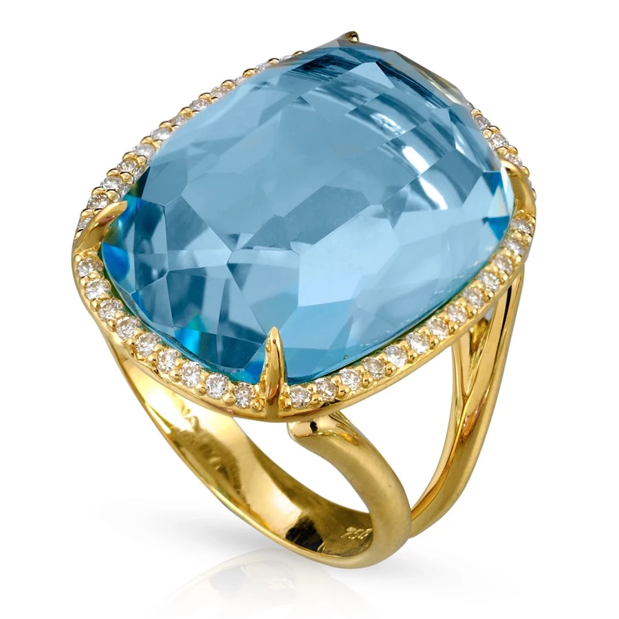 Scully & Scully 18k Gold Blue Topaz & Diamond Ring