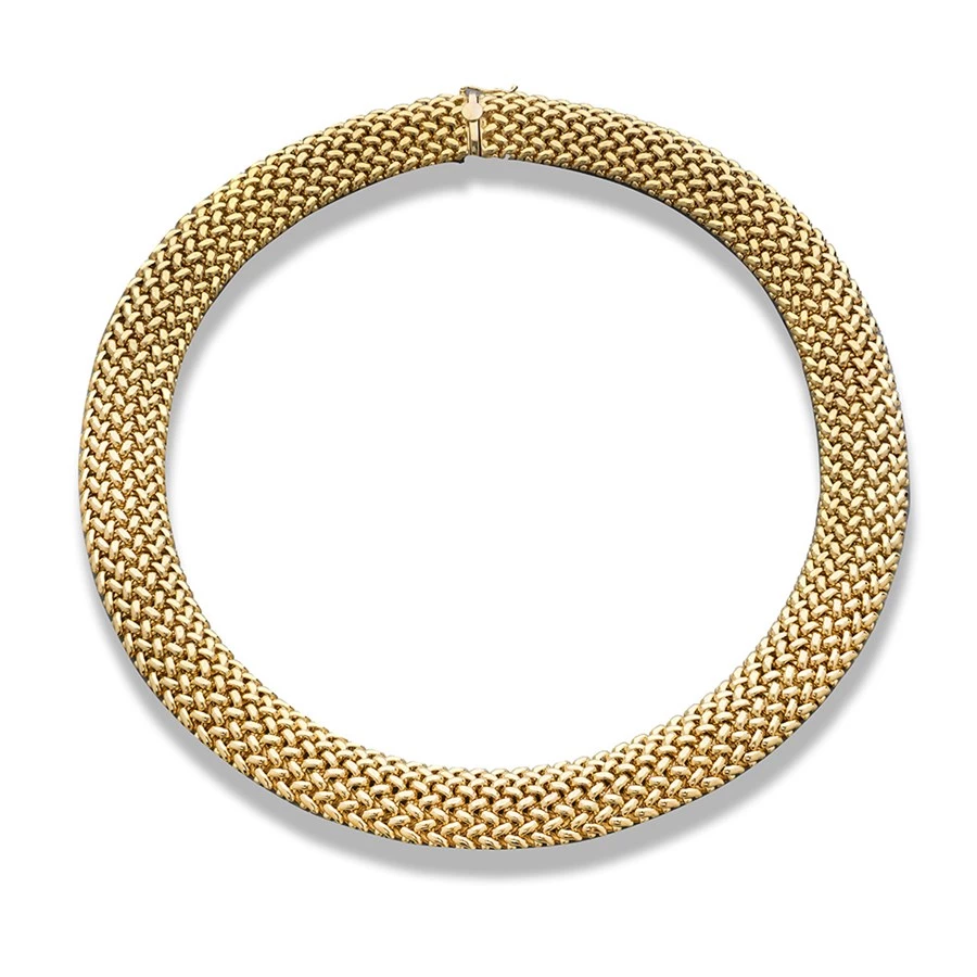 Elegant and sophisticated necklace. 18k yellow gold is handcrafted into intricate bands on granulation. Clip closure. Handmade in Italy.