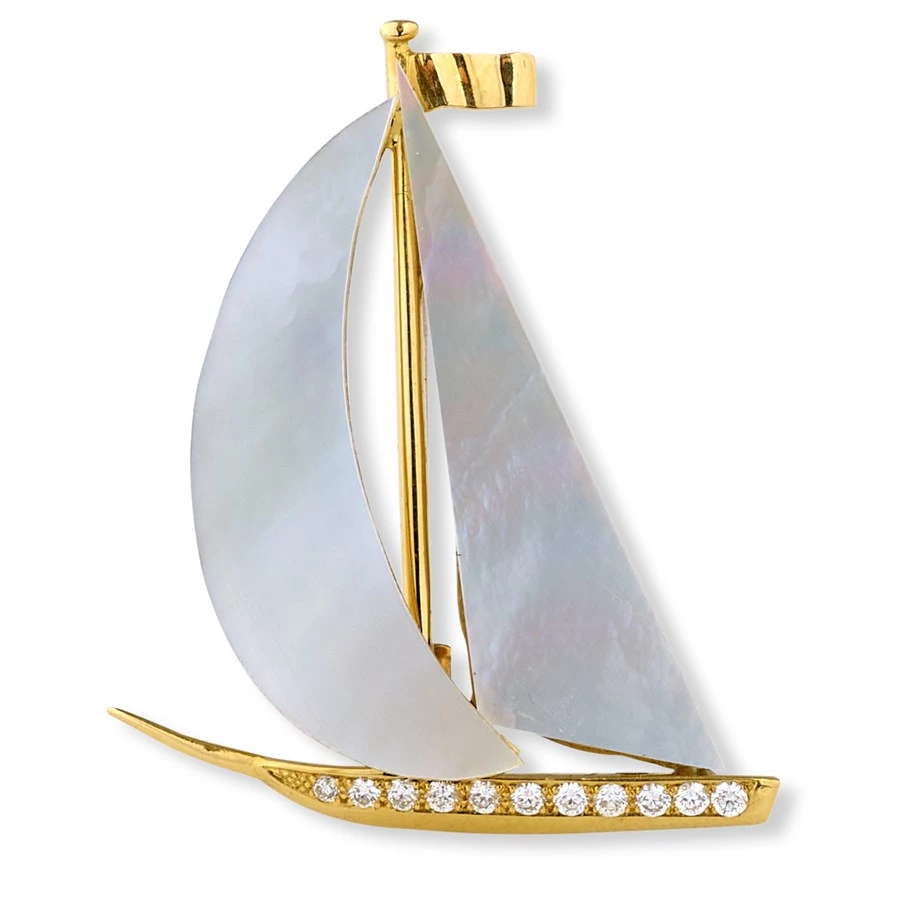 Scully & Scully 18K Gold, Pearl, & Diamond Sailboat Pin
