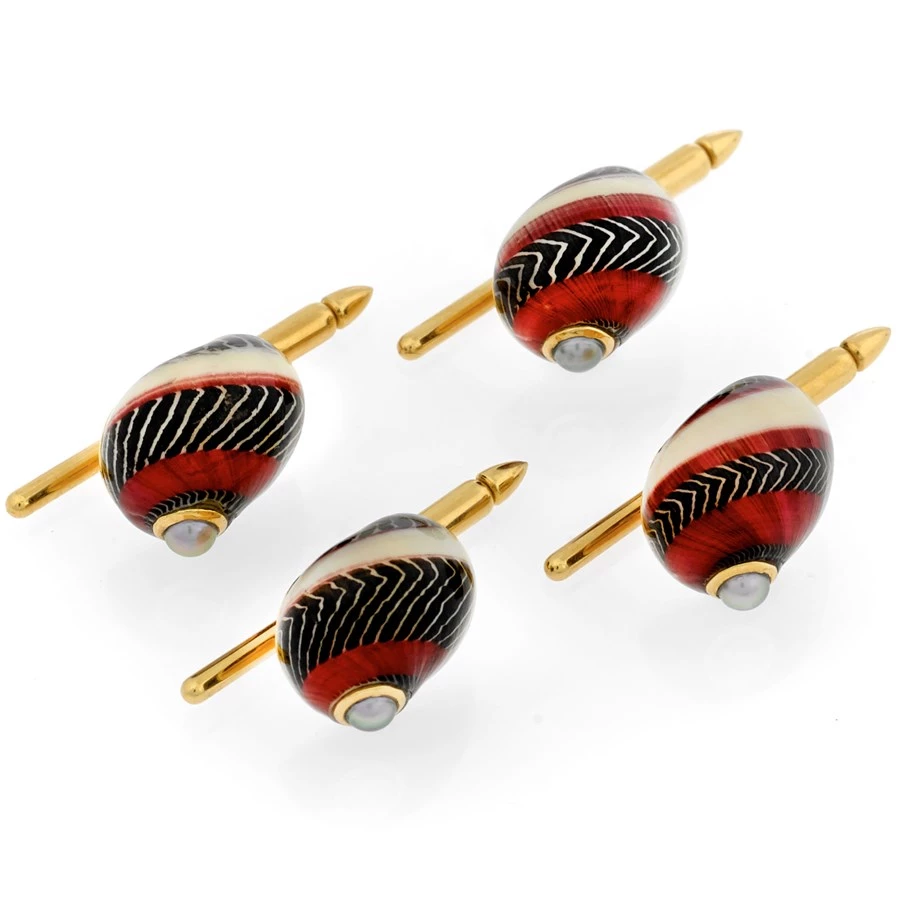 Scully & Scully 18k Gold Red & Black Shell Pearl Studs, Set Of 4