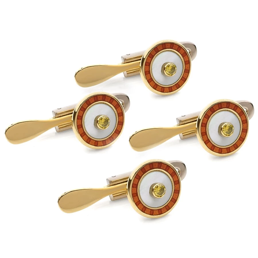 Scully & Scully 18k Gold Studs With Orange Enamel, Set Of 4