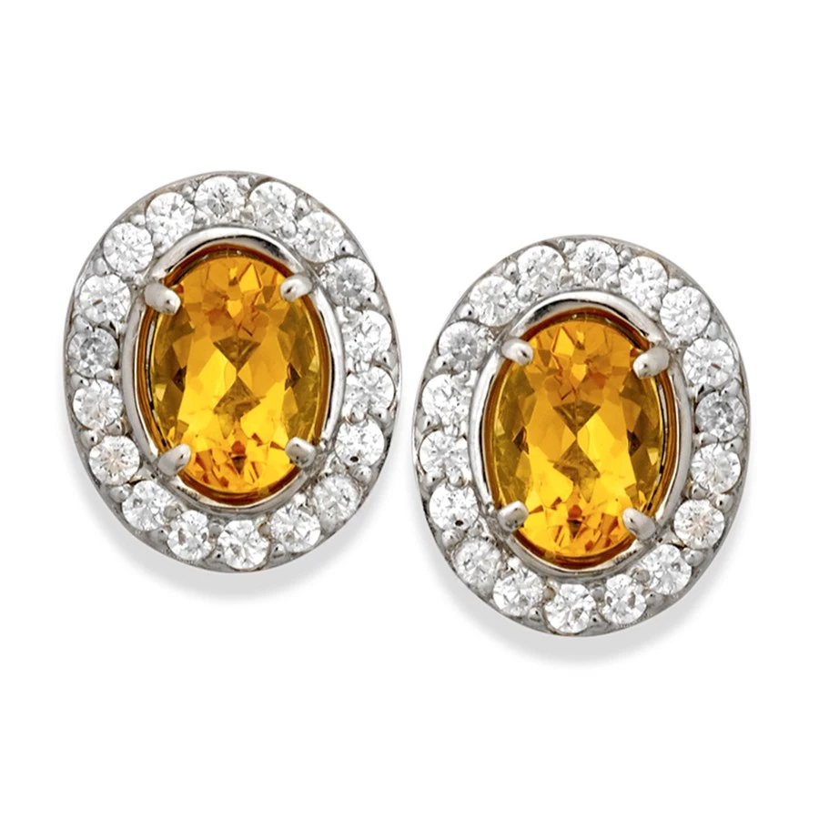 A beautiful pair of statement earrings, centered around oval cut yellow beryl gemstones (1.5 tcw), prong set into 18k white gold. Each beryl is surrounding by a halo of pave diamonds (0.54 tcw), adding additional glamour and glitter. Handmade in Brazil.