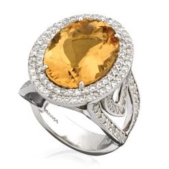 | Style | 18k White Gold Diamond Double Halo Ring, Yellow Beryl, 18k White Gold Double Diamond Halo Ring, London Blue Topaz |