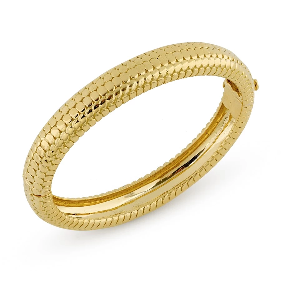 Combining the natural beauty of shark skin with the smoothness of a gentle ocean’s breeze, this magnificent 18k Yellow Gold Shark Skin Bangle is as fabulously stylish as it is luxuriously comfortable.