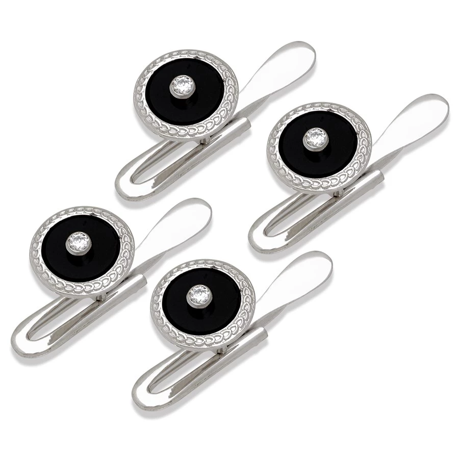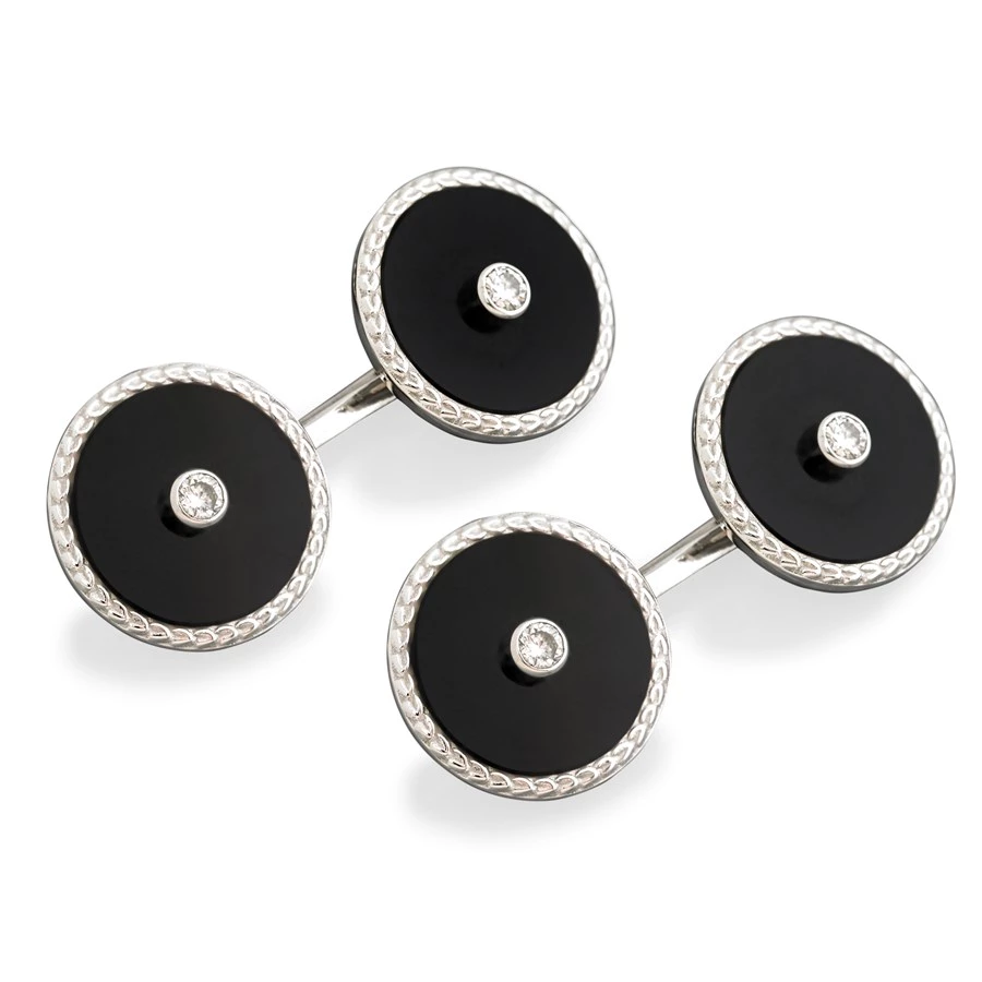 | Style | 18k White Gold Onyx and Diamond Cufflinks, 18k White Gold Onyx and Diamond Studs, Set of Four |