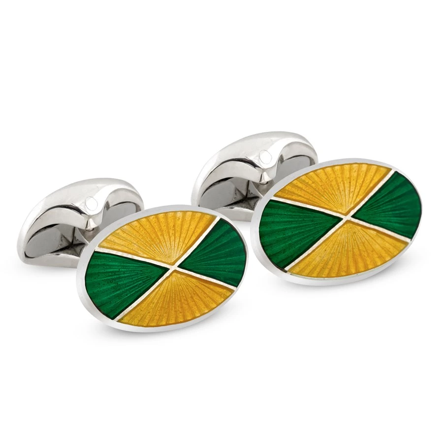 | Style | Sterling Silver Quartered Enamel Cufflinks, Yellow & Royal Blue, Sterling Silver Quartered Enamel Cufflinks, Maroon & Royal Blue, Sterling Silver Quartered Enamel Cufflinks, Green & Yellow, Sterling Silver Quartered Enamel Cufflinks, Maroon & Ivory |
