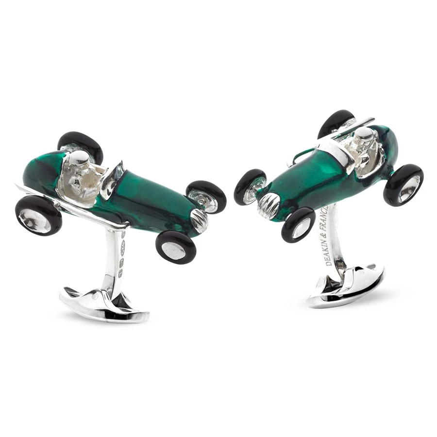 Whether he’s always in the fast lane or is a vintage car enthusiast, these racing car cufflinks are miles ahead. Hand-enameled bodies. Small domed spring link fitting. Handmade in England.